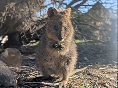 日本語ガイドと一緒に“世界一幸せな動物”クオッカを探しに出発!クオッカが近くに来てくれたら、一緒に写真を撮りましょう♪ |